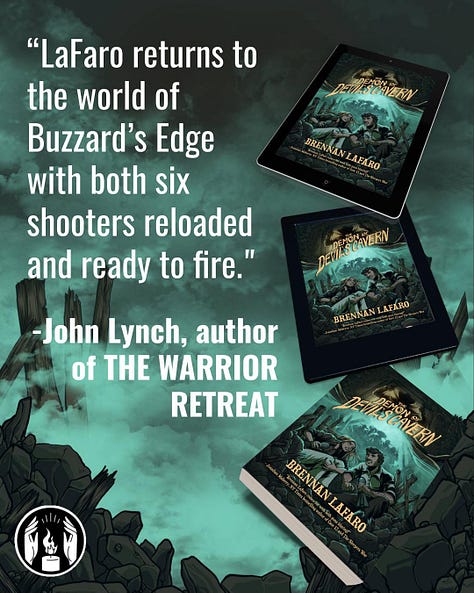 Typing this up on April 1st, it’s now officially release month for The Demon of Devil’s Cavern. I continue to be floored by some of the blurbs above, but also early reader response. The way it’s garnering praise from readers who are continuing the journey from Noose and readers who started with this book is extremely gratifying, and I’ll never grow tired of hearing readers who “don’t like westerns” find something to love in these pages.